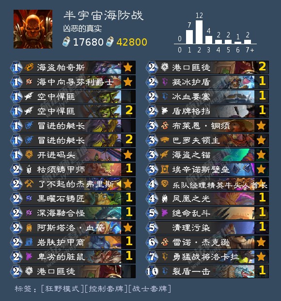 要说为什么带这张卡,我认为和防战里奥丁的位置是一样的,提供/扩大后期赢点,带奥丁收效甚微的我们必须想点别的办法补上这个空缺,配合血誓 船长就是打后期的不二法门。