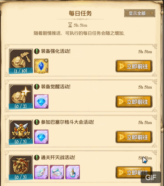 当然,除去“每日任务”外,游戏的副本也是极多,需要玩家“爆肝”来刷取材料。
