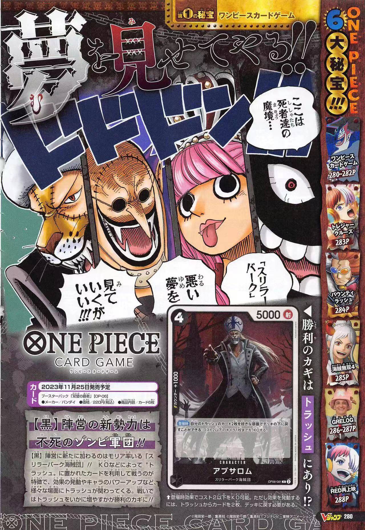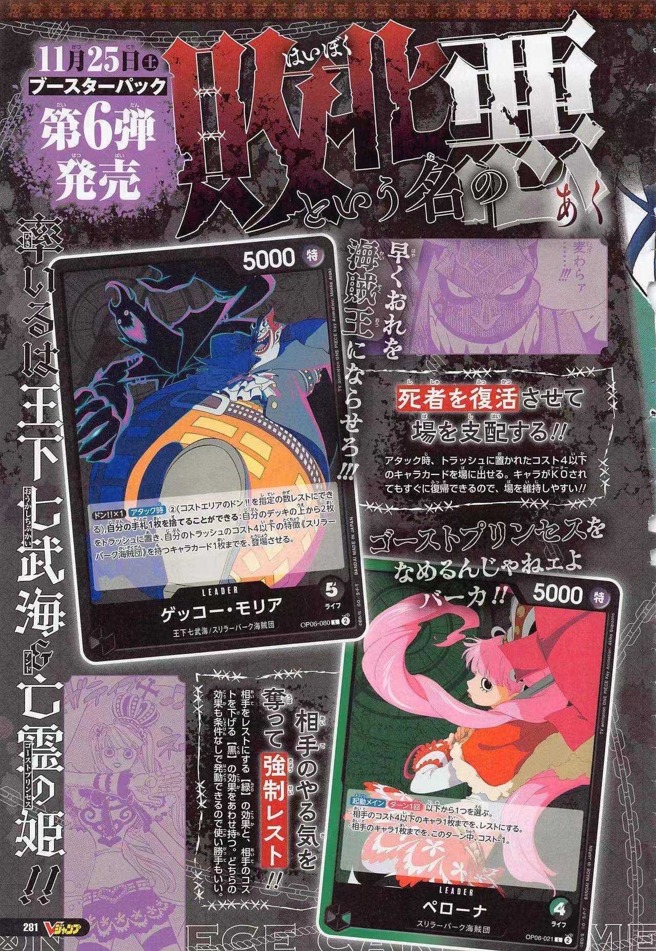 合计曝光了5张新卡,两个新领航,同时至此OP06所有领航现已全部公开(其余四个是黄绿大和、蓝紫蕾玖、纯绿霍迪琼斯、红紫乌塔)