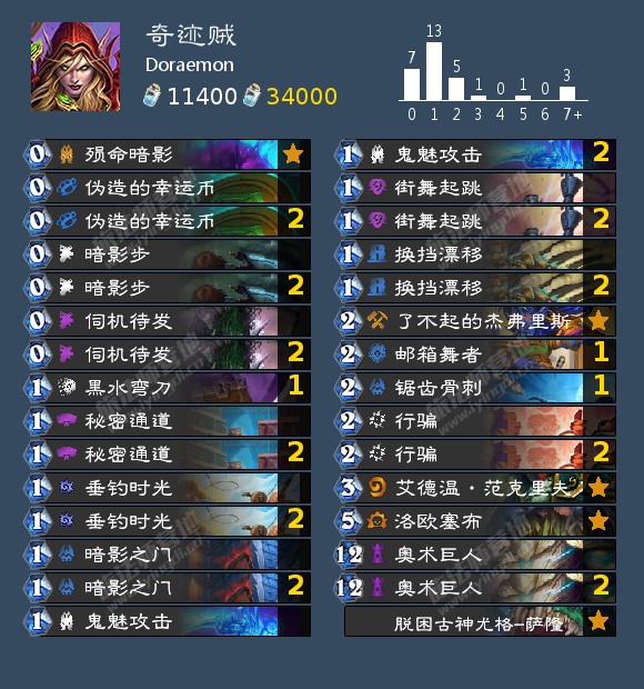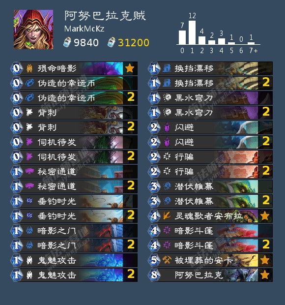 - 娱乐卡组: 阿努巴拉克贼,扇贝贼,力战无面者OTK战