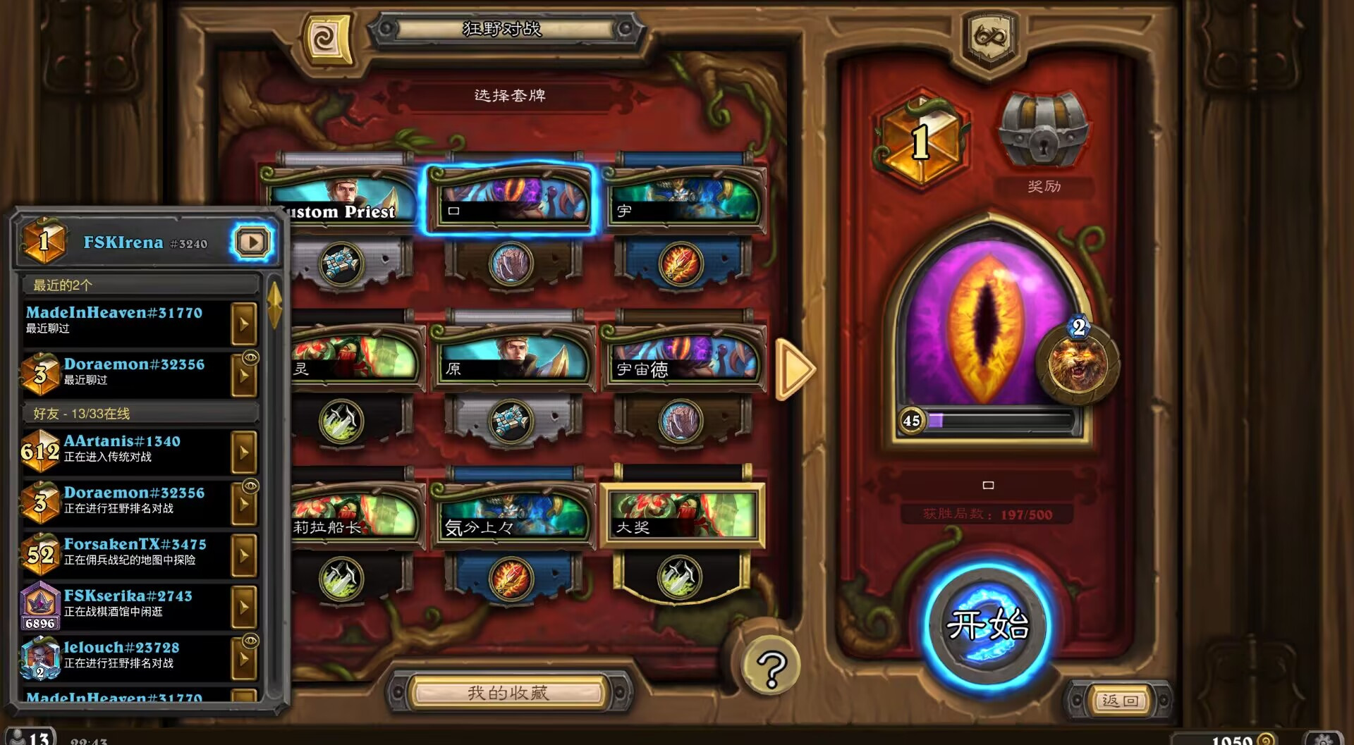 大佬好,我是slupper#11385 美服,投稿一套半宇宙海防战,小鸡开打打到传说25名,打奇迹贼战绩13-2,劣爆牌德和一众40卡组,值得一提的是打开门法不错,不劣势,乐队经理精英牛头人酋长里是凤凰之光 加尔范上尉 奈利,超巨蛇颈龙。根据环境可以带上奥丁