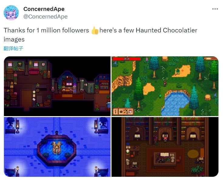 为了庆祝达成100万粉丝,《星露谷物语》的作者ConcernedApe分享了几张新作《恐怖巧克力工厂》的游戏截图,该作自2020年开始开发,发售日期和登陆平台尚未公布。