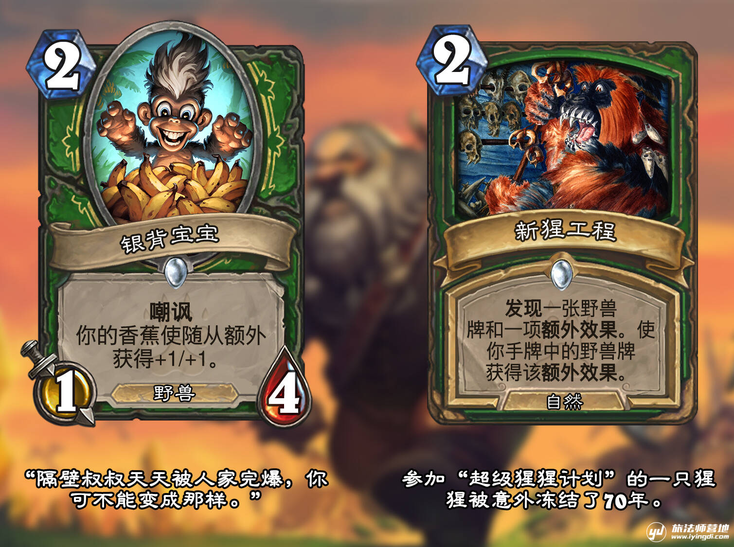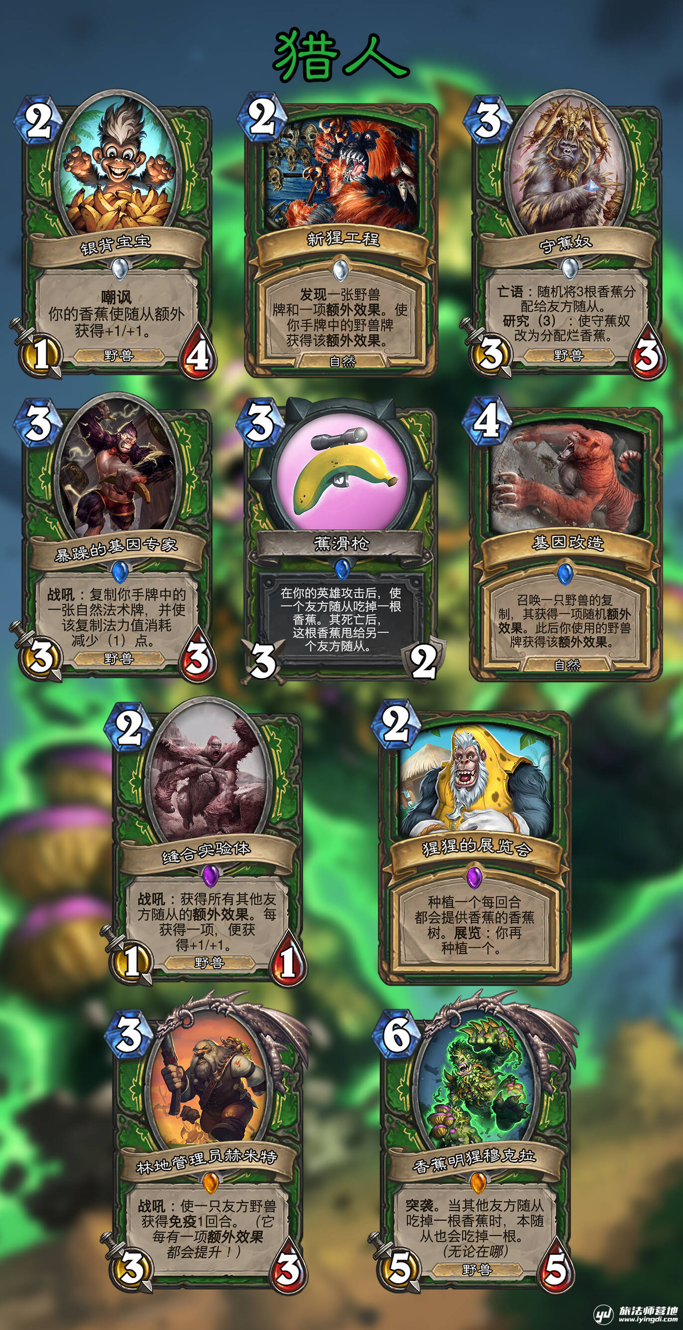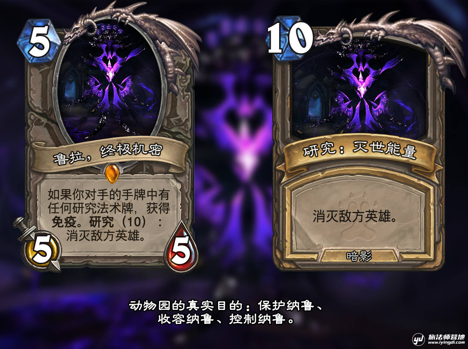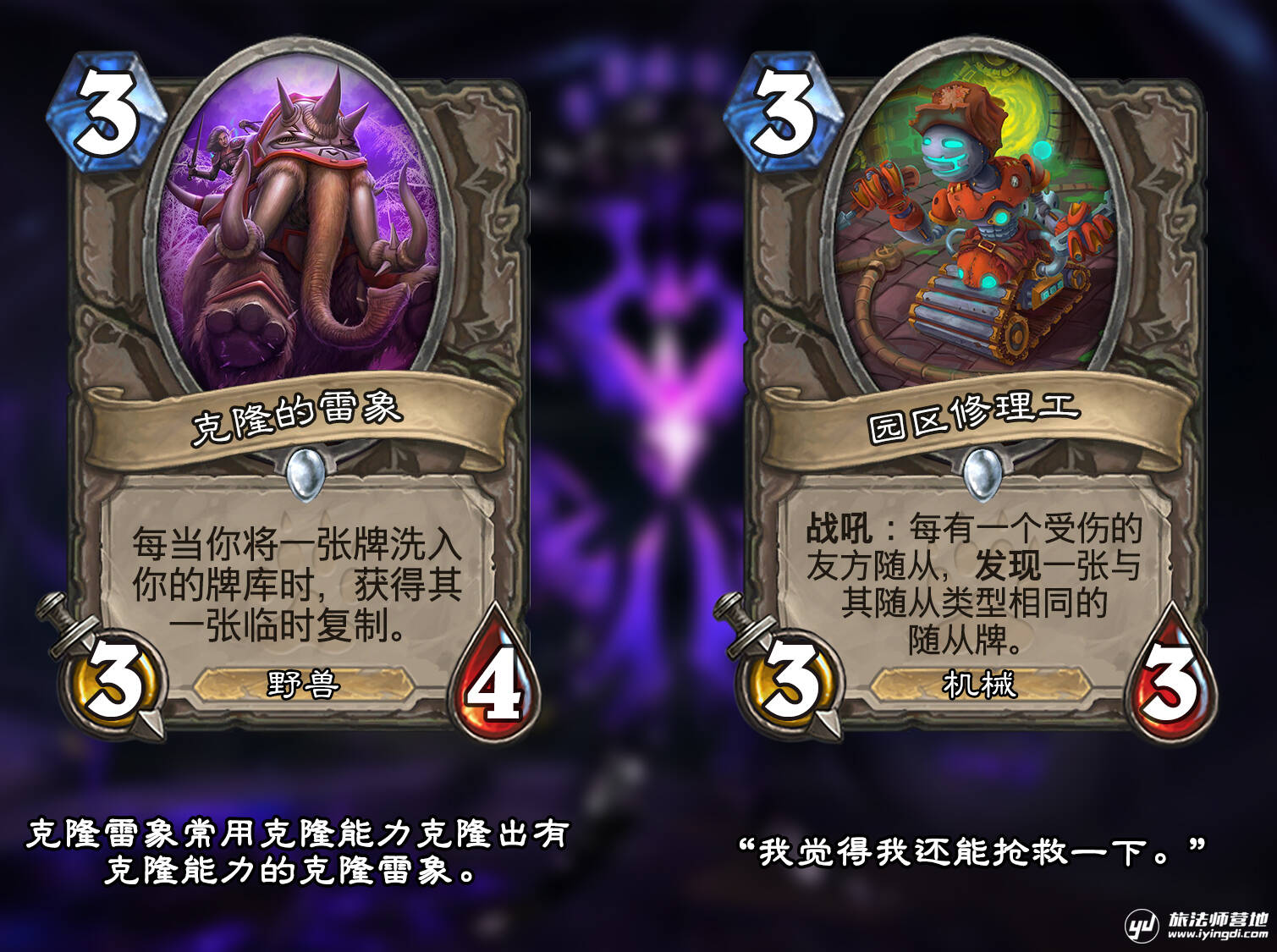 原本的拓展包是想要搞剑走偏锋的架构,即“每个职业各自所有的随从都是完全相同的属性值”这样很有胆创的想法。以此为目标在确立主题时认为动物最贴合这种形式,因此敲定了“普崔塞德教授在一个秘密的地方建造一个动物园”的故事。因为考虑到相同的属性值想做出差异化,可能会出现一些低费用高属性的随从,这时就需要一个负面关键词,“研究”便应运而生。