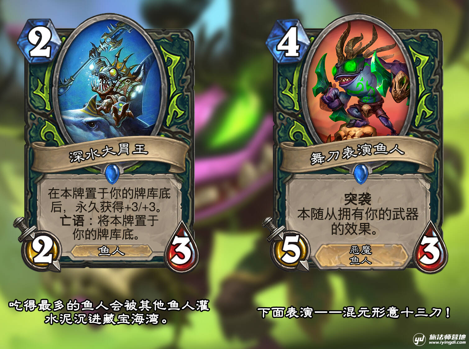 如果武器具有战吼/流放,使用舞刀表演鱼人在入场后也会触发战吼/流放效果。