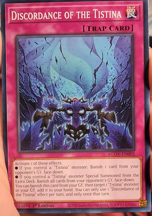 ●自己场上有「Tistina/蒂斯蒂纳」怪兽存在的场合可以发动。将对手墓地的1张卡以里侧表示除外。