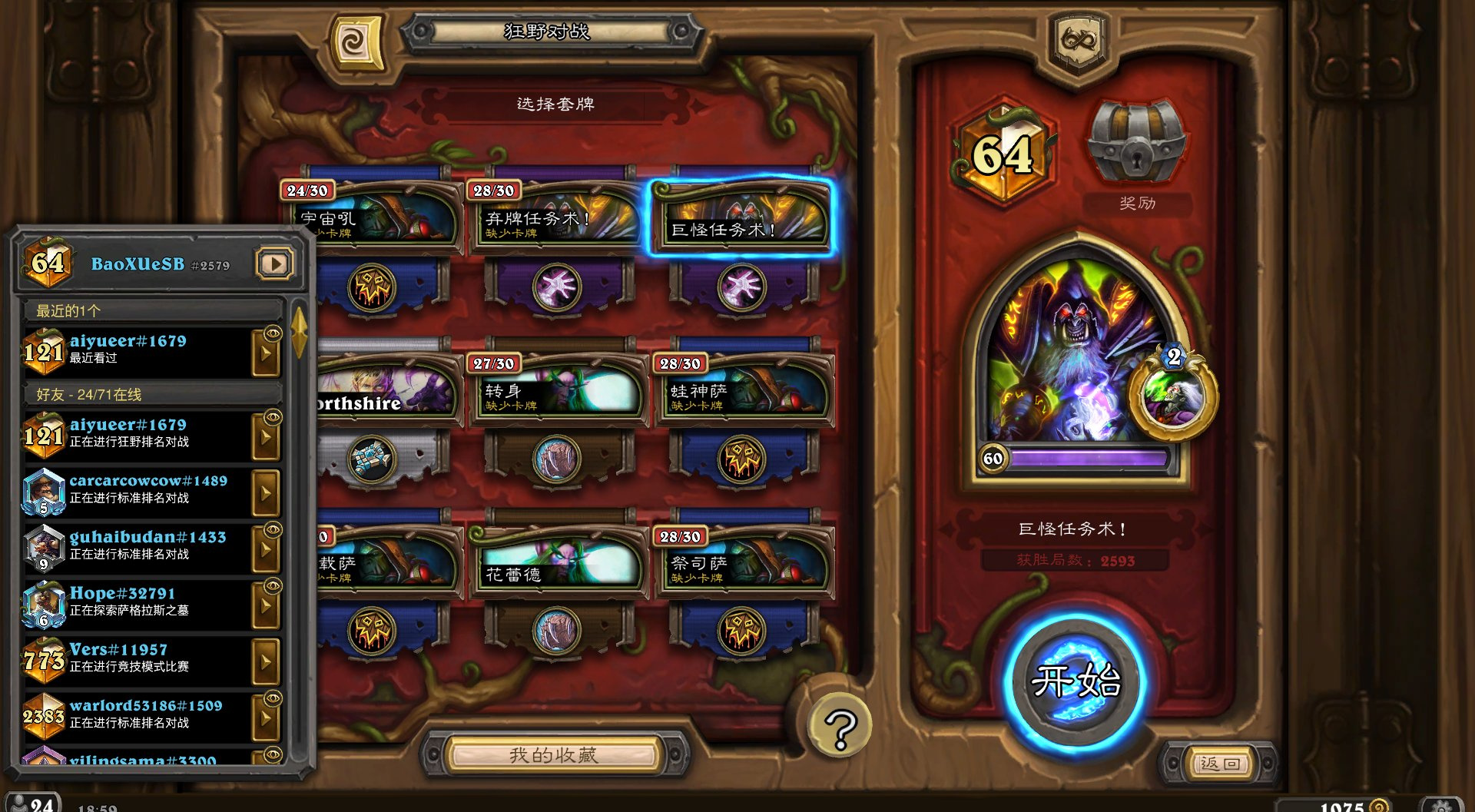 狂野 - 黑眼巨怪任务术 6费极限OTK - by Rahktoh - 视频