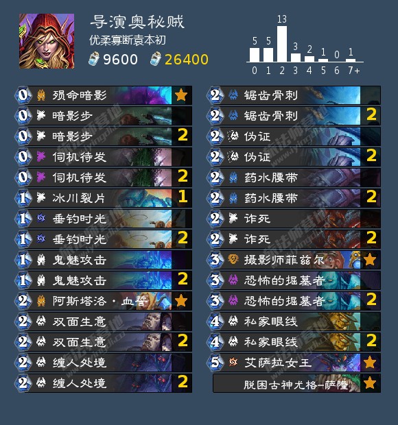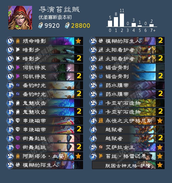 1.法术体系,盗贼职业特色带来的大量低费法术,为整套卡组的流畅与厚度提供了底层基础,同时也完美契合了优质新卡越狱者和导演,讨论几个可能有争议的卡位:
