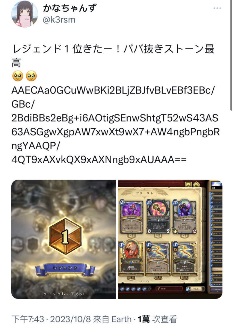 HSReplay 标准 钻石~传说分段 卡组推荐 (10/5~10/7)