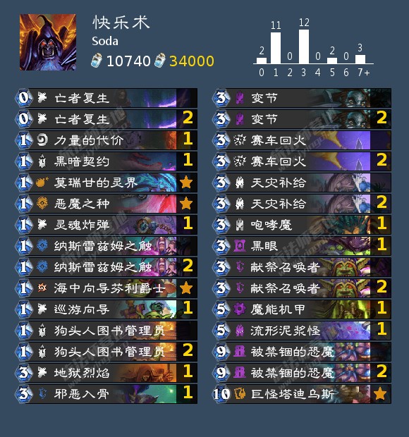 9+3的任务术,是非常有潜力的一套卡组。偶数回合9+3拉出塔爹,然后就可以狂刷过牌,感知恶魔稳定检索黑眼和无证药剂师,一回合可以刷完任务线三个阶段、出1费的577然后斩。实战这套牌经常可以做到4费斩杀,前置条件只有自伤9点+手上9和3+塔爹不射手。构筑感觉可以再优化,但是这套已经很强。