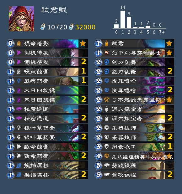 加入冰血要塞和失窃物资的最初想法是为了给导演减费,所以加入一些不卡手的低费法术,前者打快攻和奇迹贼配合小夫(防赛布),后者可以打口德过墙和过脏鼠。卡组打德贼快攻很好打,不好打开门