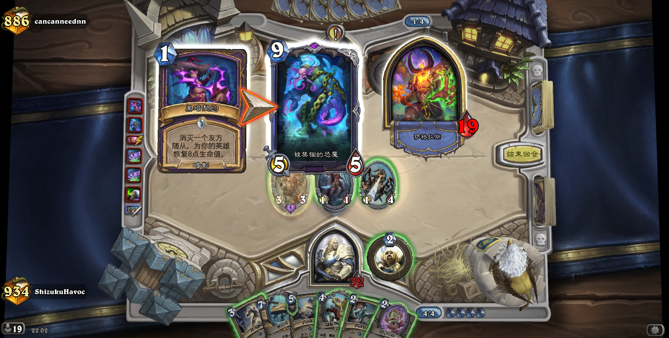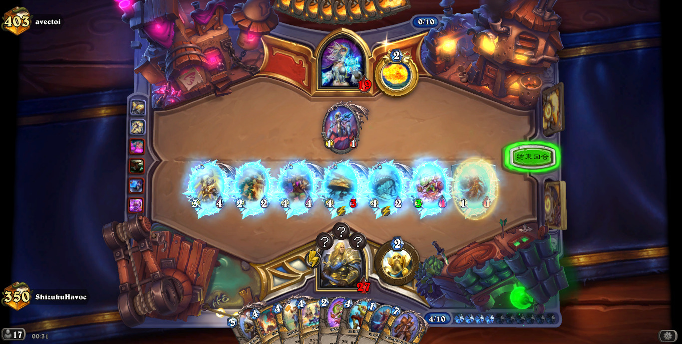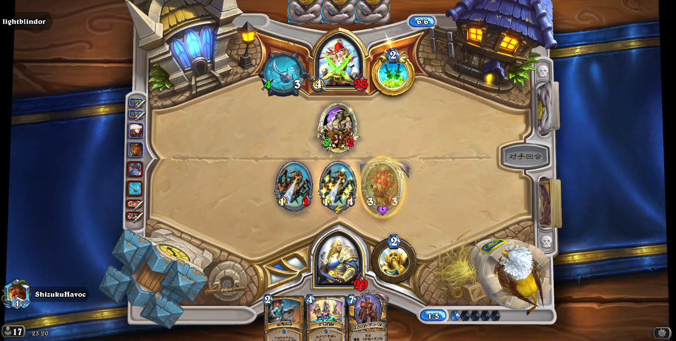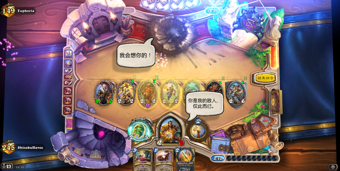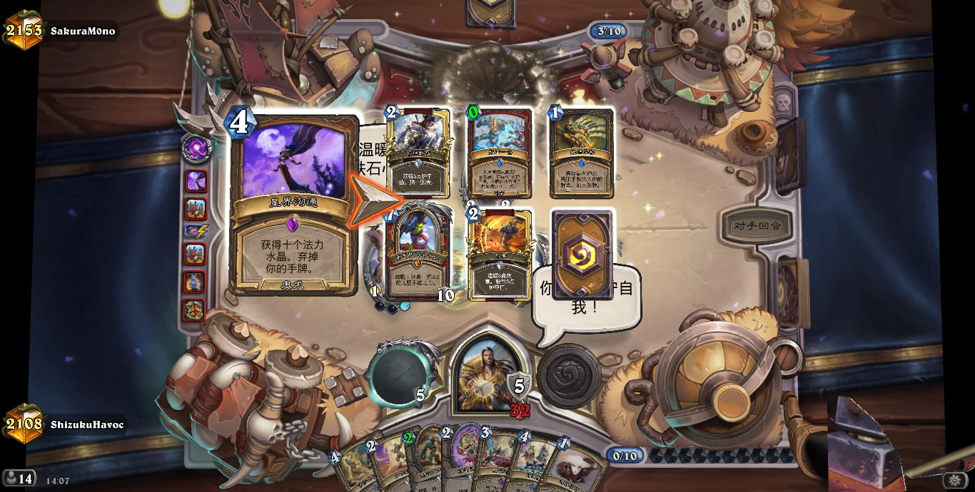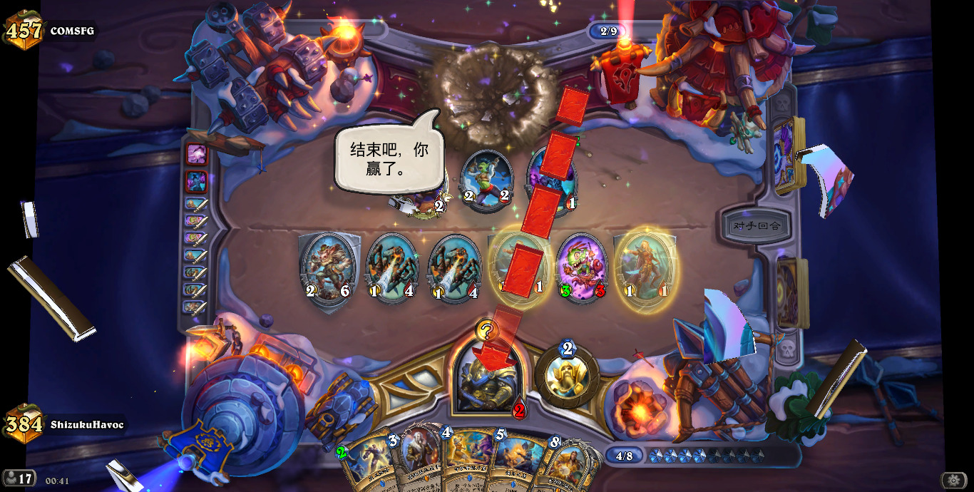 (另外我掉线的几把除了一个偶数邪dk,都是开门法,还都是关键一滴血的时候)跟对阵德鲁伊一样,揣摩对手手牌,给足压力,不要松手,出死力打,不要犯错!