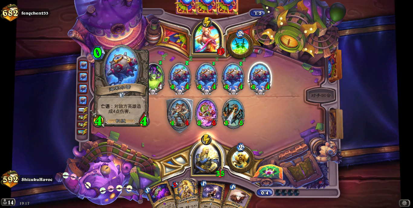 部分卡组可能是经历过上个月的腥风血雨后仍留存当时的形态。补丁后偶数战和战吼萨难以应对我方的波浪式冲击。