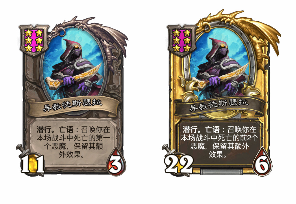 - 6星11/3,潜行,亡语:召唤你在本场战斗中死亡的第一个恶魔,保留其额外效果