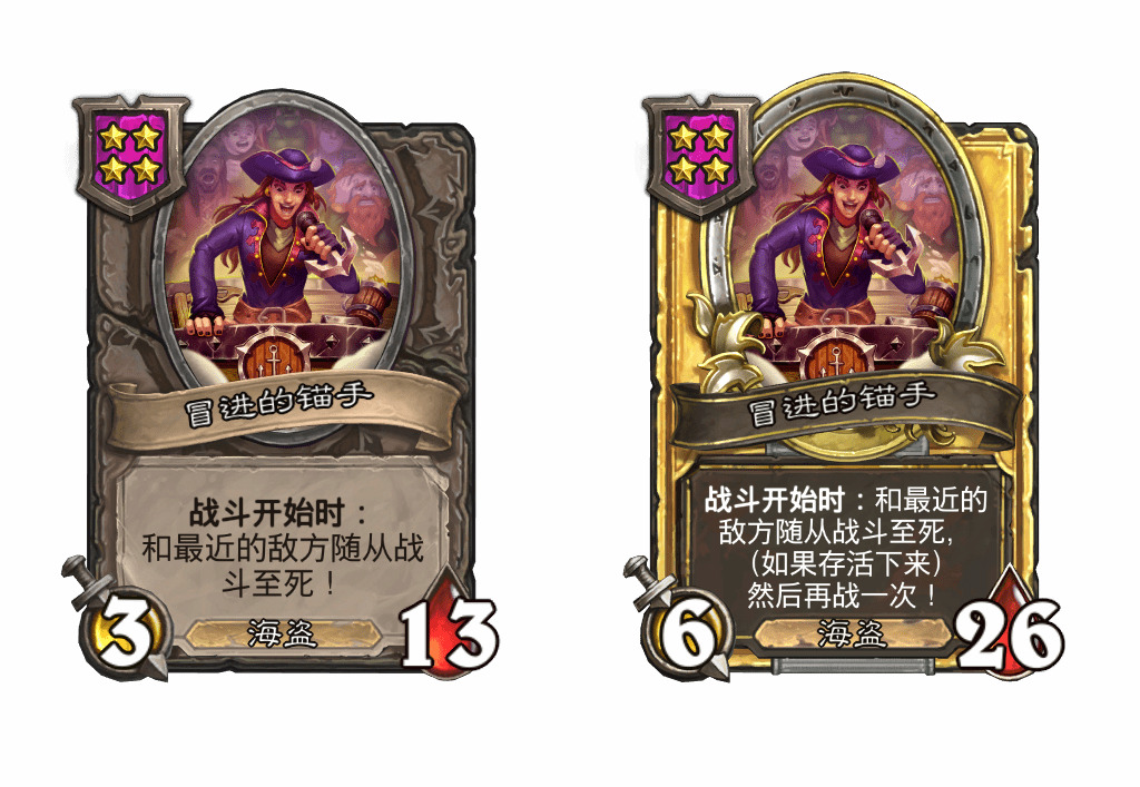 - 4星3/13海盗,战斗开始时:和最近的敌方随从战斗至死!
