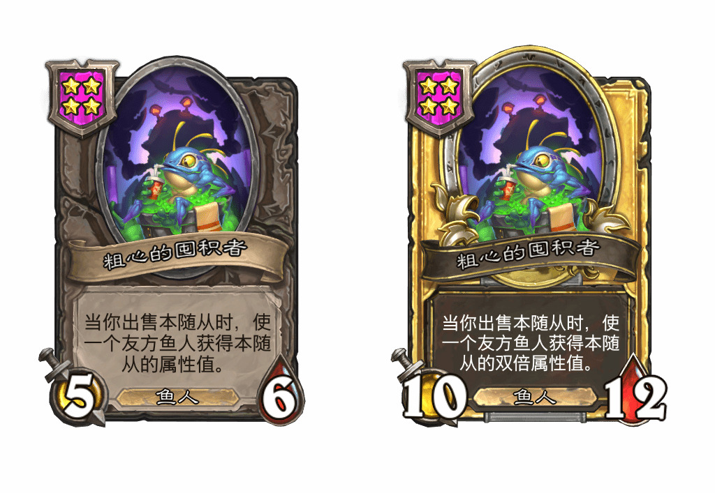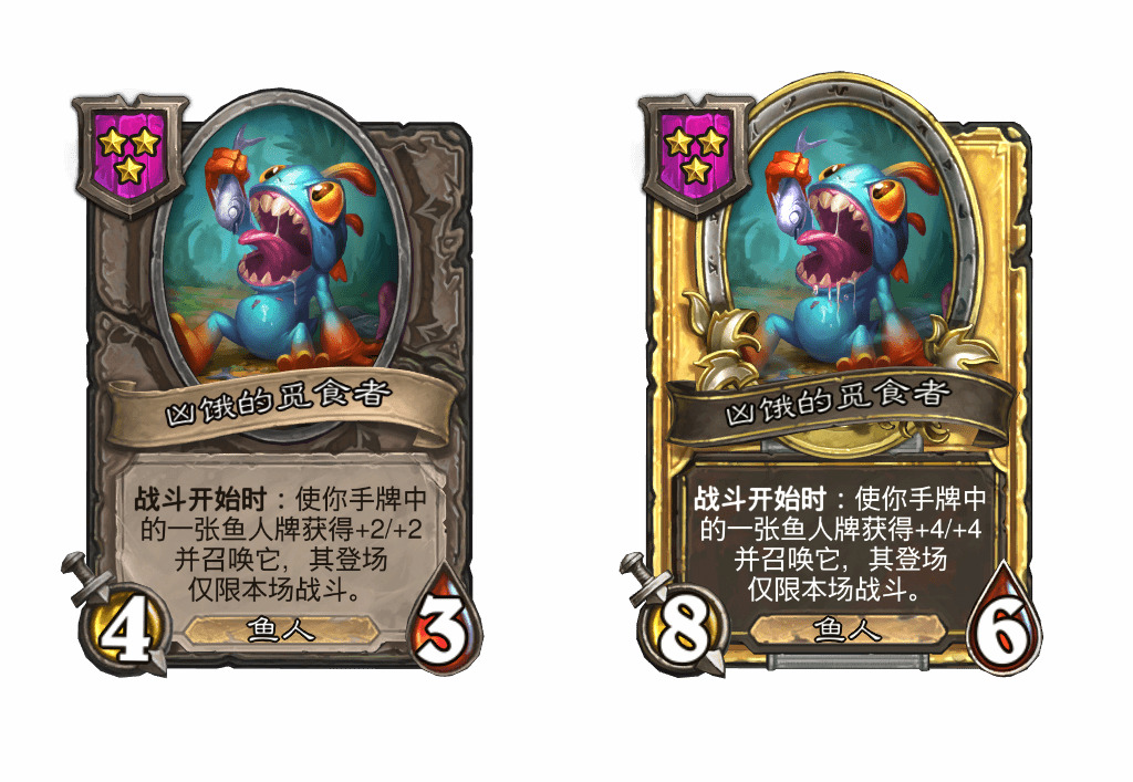 - 4星5/6鱼人,当你出售本随从时,使一个友方鱼人获得本随从的属性值