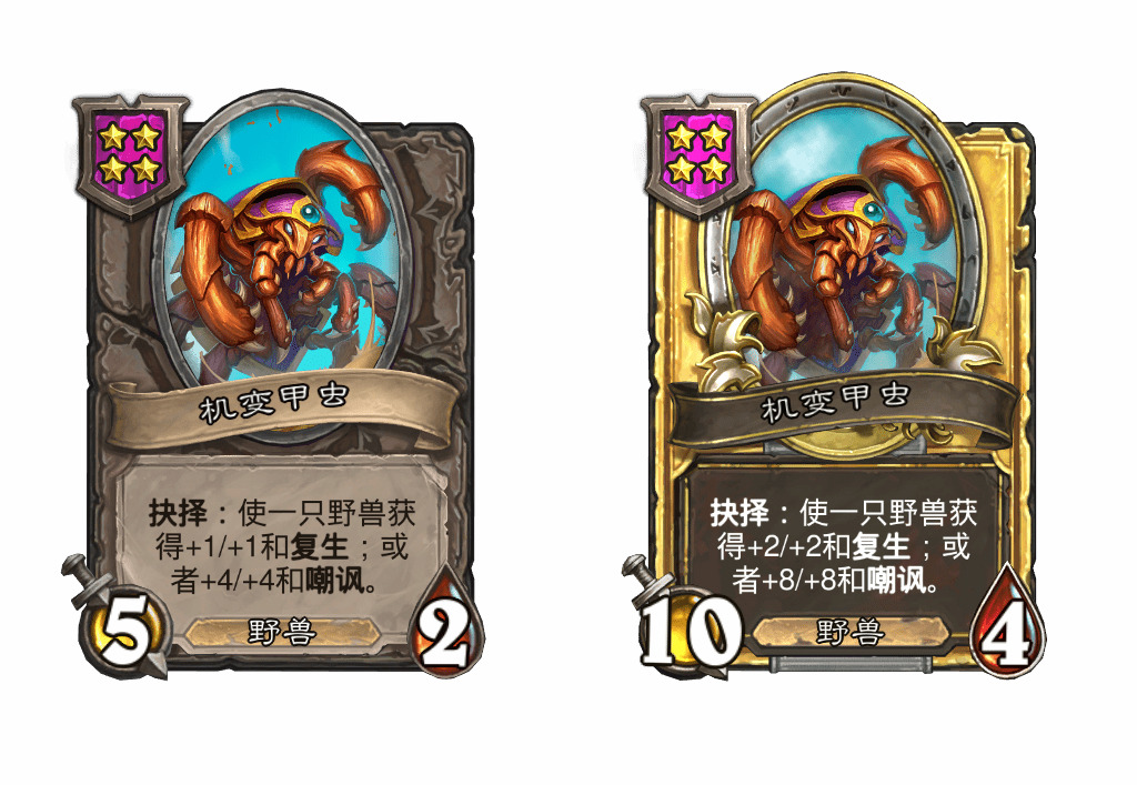 - 4星5/2野兽,抉择:使一只野兽获得+1/+1和复生;或者+4/+4和嘲讽
