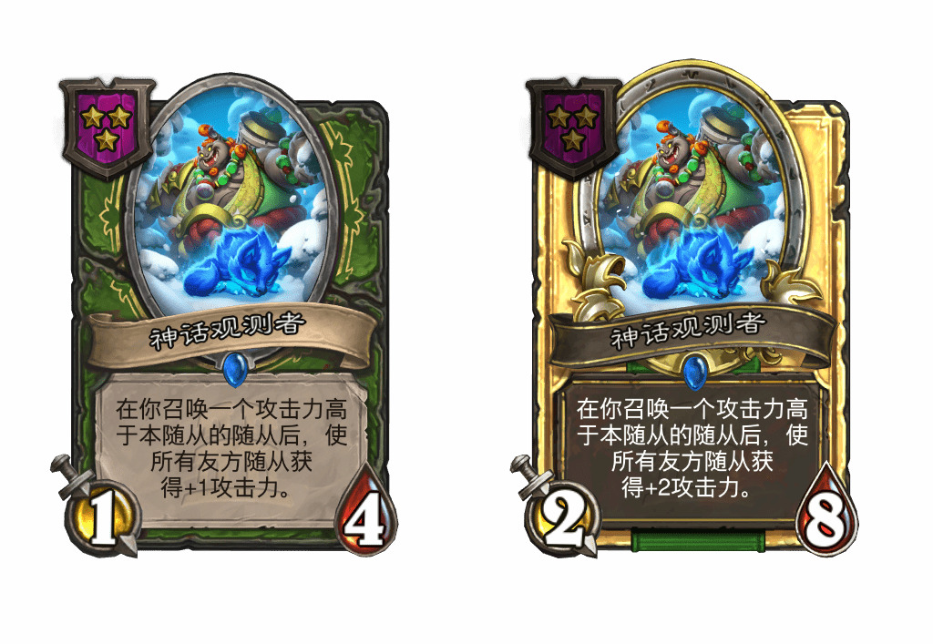 - 3星1/4,在你召唤一个攻击力高于本随从的随从后,使所有友方随从获得+1攻击力