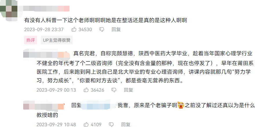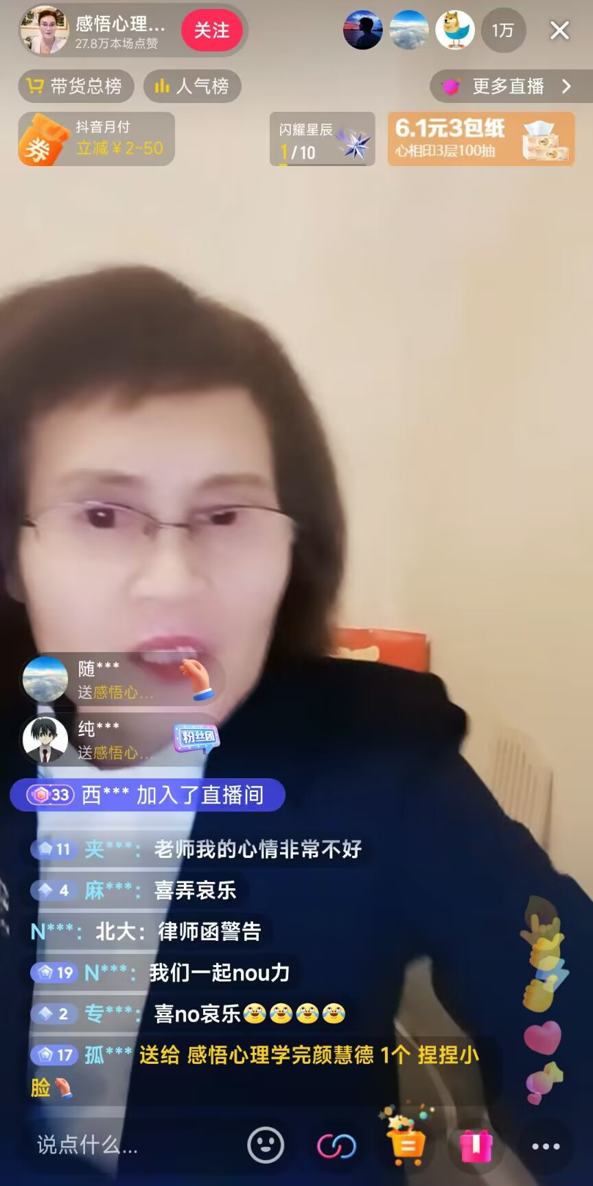 对于这些爱捣乱,经常在直播间“带节奏”,讲着自己听不懂、无法理解的话题的大量新观众,这位出生陕西,靠着一个在2019年已经取消认证的国家二级心理咨询师的证在网络上打造高学历高情商人设的六旬老太(年龄我猜的)显然不清楚这暴涨的流量背后到底发生了什么。