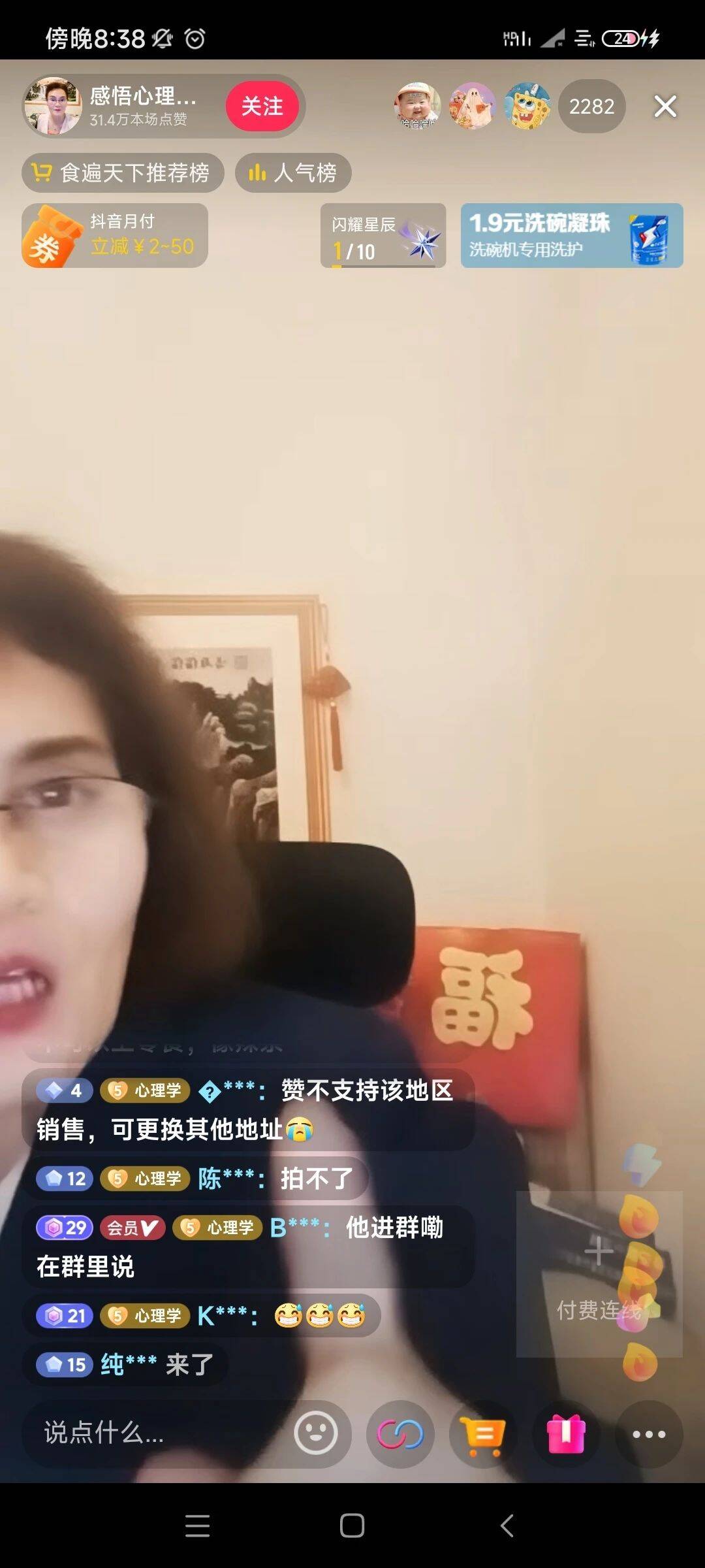 活跃用户几乎无一例外是来找乐子的通讯录,至于原本只是来花钱找大师买点心理安慰的阿姨太太们,大概早就被这抽象的直播氛围给熏走了。