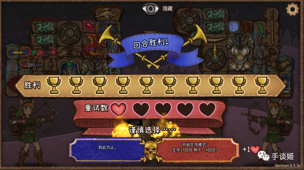 接下来,你会进入战斗,你的角色会随机匹配到一位玩家(并非在线实时匹配,更类似一个玩家留下的数据记录),并自动使用背包里的道具与其战斗,若胜利,进军下一轮,若失败扣血,失败达到5次,本轮游戏结束。