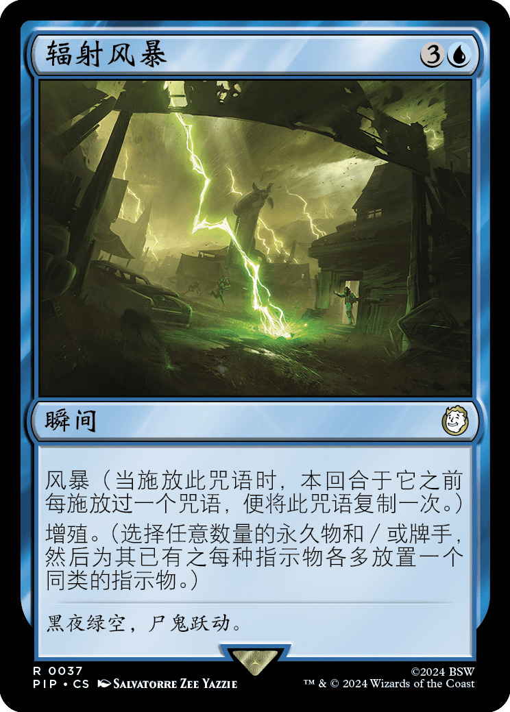 宽画牌回归本系列,在Magic: The Gathering® – Fallout®聚珍补充包中可以开出不闪、传统闪和潮涌闪三个版本。