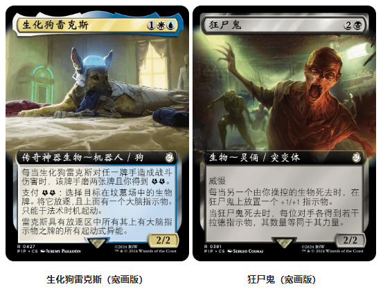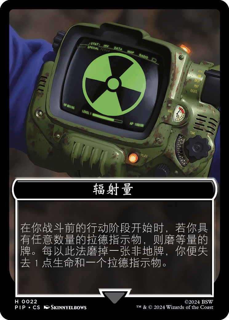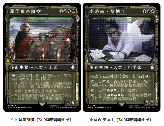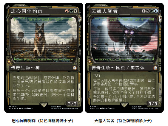 聚珍补充包内还会开出无边框避难所小子重印牌,此类牌共有9张并配有辐射主题插画,有不闪、传统闪和潮涌闪三个版本。