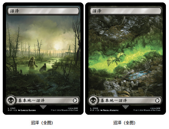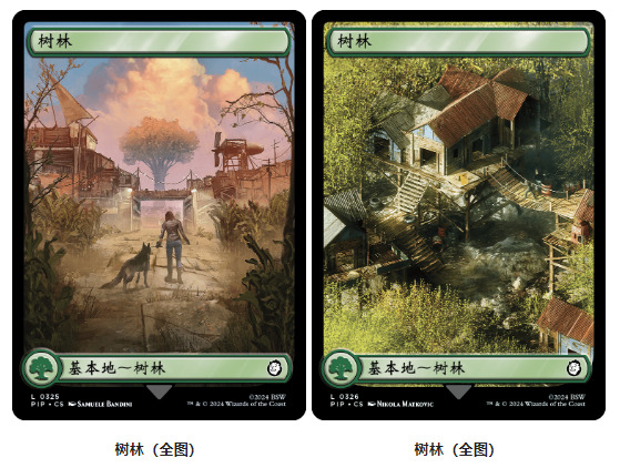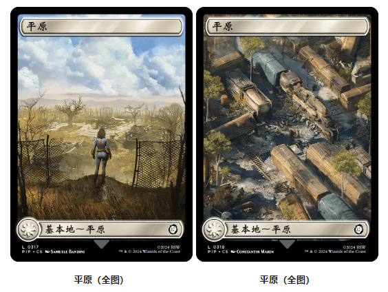 Magic: The Gathering® – Fallout®指挥官套牌推出了5张不闪的全图基本地,牌张描绘了《辐射》经典系列中的等角环境。这些牌在聚珍补充包里有传统闪和潮涌闪两个版本。