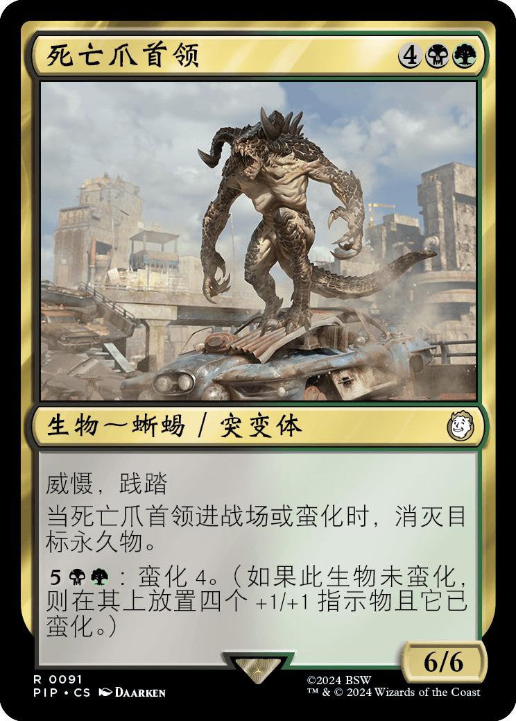 变种威胁(黑绿蓝):想要来点不一样的,那就试试变种威胁套牌,《辐射》游戏中的危险变种生物均汇集于此,比如这副套牌的指挥官,天蛾人智者。召唤生物,之后利用指示物和增殖为其加成。使用最新推出的拉德指示物(会让你受到伤害并磨牌的指示物)让你和对手遭受辐射。