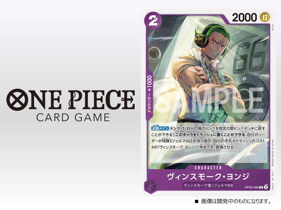 启动主要:咚-1:你可以弃置此角色: 如果你的领袖拥有[杰尔马66]特征,你可以从手牌或弃牌区登场一个费用为4的[文斯莫克.勇治]。