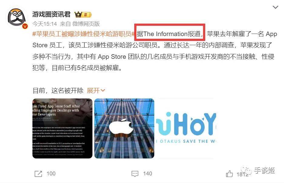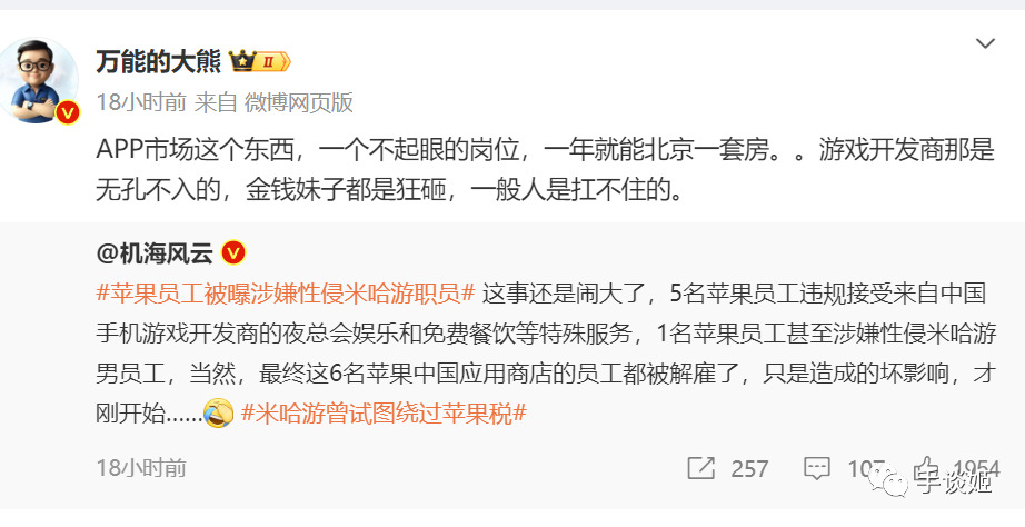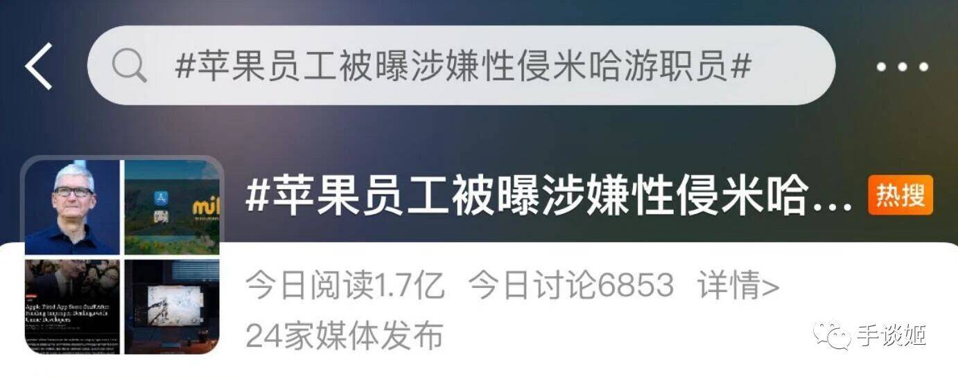 昨日,“苹果员工被曝涉嫌性侵米哈游职员”话题冲上热搜,并在一定时期内占据了微博热搜榜一的位置,令人大跌眼镜,本次就来聊聊这个话题。
