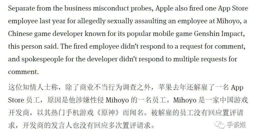 之前提过,在the information那篇文章中,“性侵”只不过是该话题的一段,该报道的主要话题是苹果公司对国内的应用商店员工的不当行为进行了内部调查。