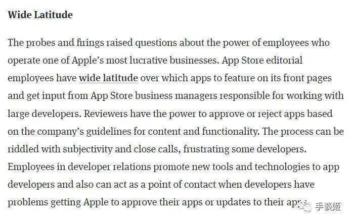 于是,假若说这篇报道为真,那么其昭示的最大问题还不在于职场性侵(当然这也需要重视),更是在于如果app store负责编辑主页的员工如果有足够的自由度,并且其背后足够暴利的话,就会导致一些很糟糕的腐败行为发生,从这个角度看,苹果严格的规定也是有其道理的。