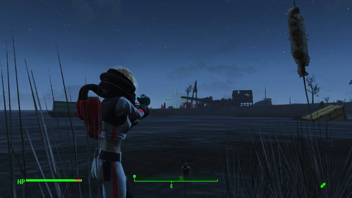 沼泽:在通向Atom Cat Garage(原子猫车场)的路上会穿过一片瘆人的沼泽地,听说这里时不时会有辐射云密布,并且会从水底跳出各种变异的怪物。但是我们的原子可乐女孩和狗肉肉一点都不害怕,一往无前地朝车场走去。(进沼泽之前小女孩朝里面扔了大概20多颗核弹)。