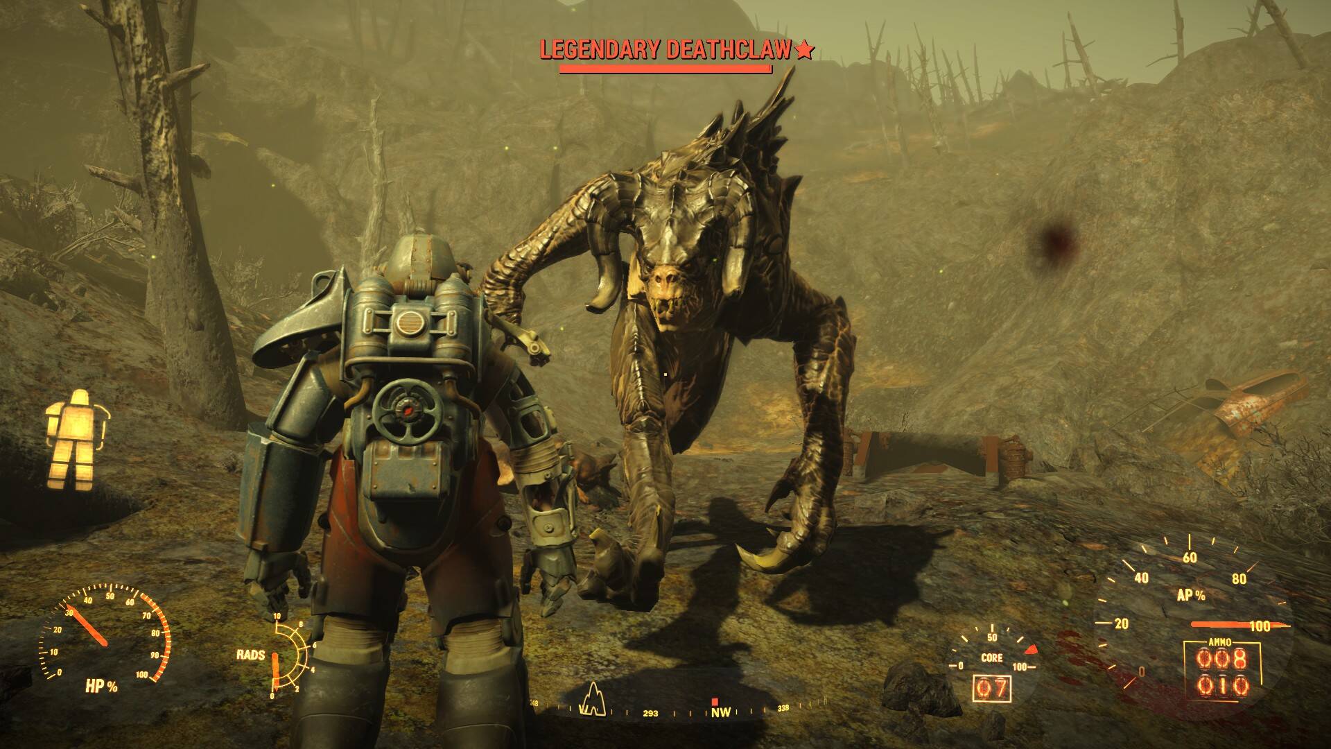 辐射4中的战斗有的真的非常吓人,众所周知死亡爪是游戏中最强的怪物之一,这个还是Legendary带了个五角星的,我都不知道自己是怎么活下来的。摄于Cave