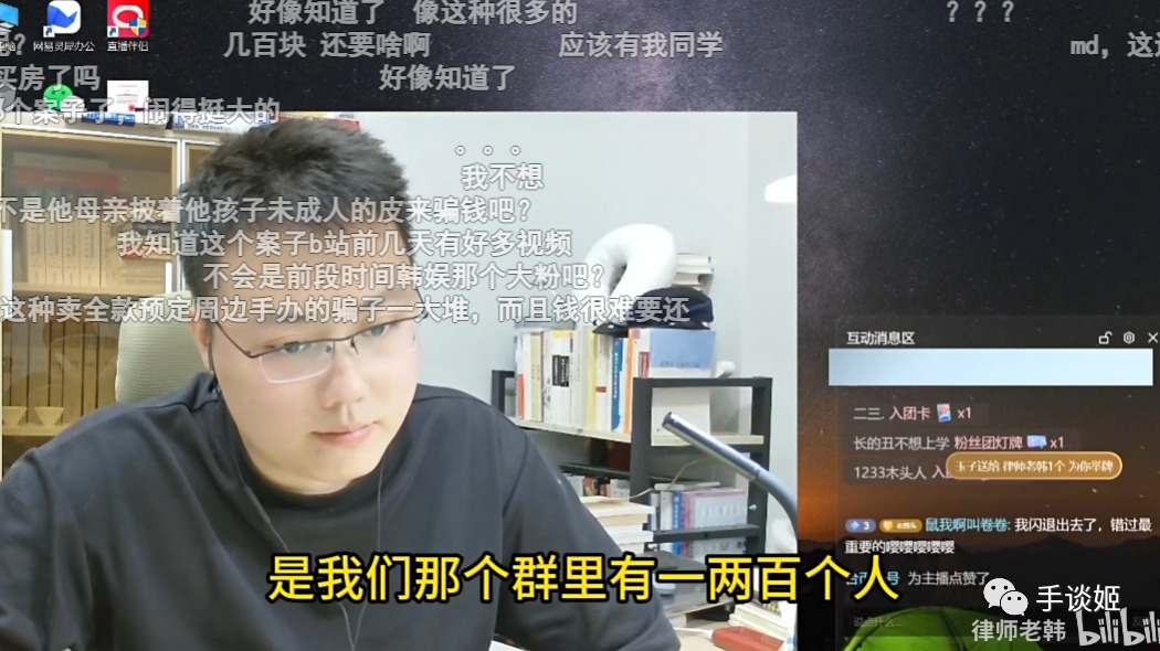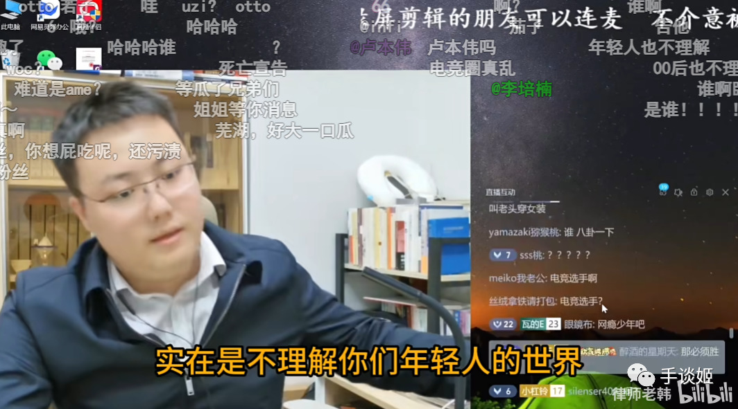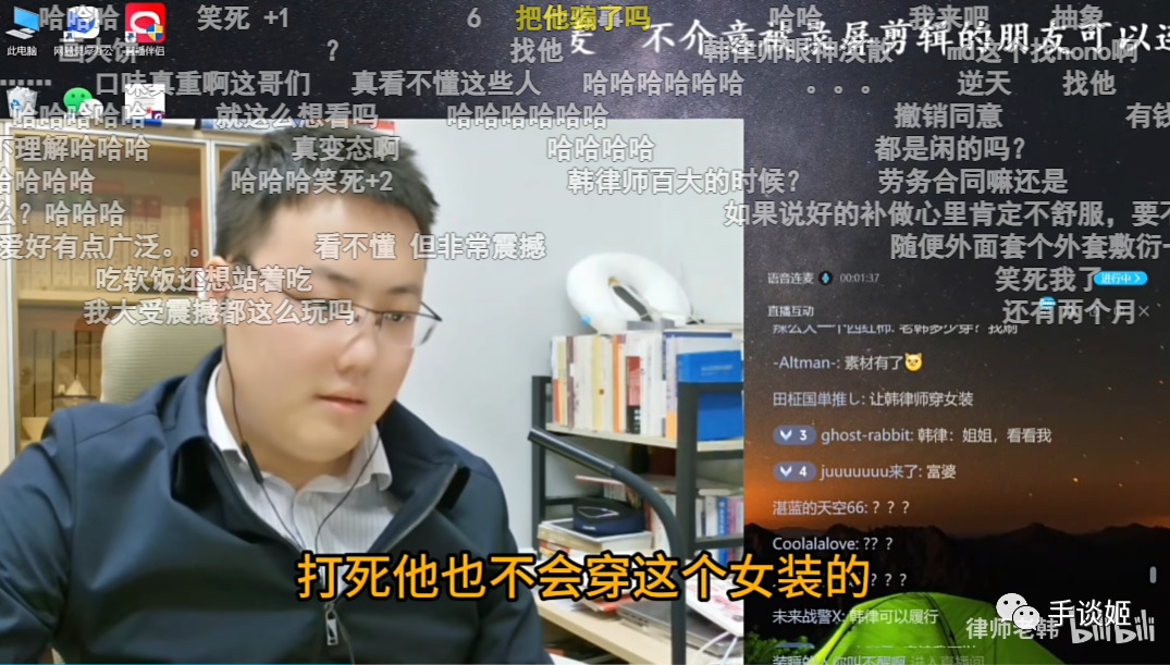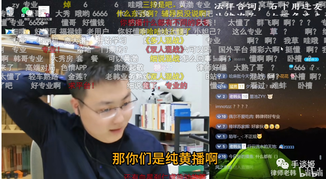 最近手谈姬就在B站首页时不时刷到“律师老韩”的直播切片,形式无外乎一位网友与该律师连线,随后诉说自己遇到的问题与困惑,接着律师进行解答,弹幕疯狂:???