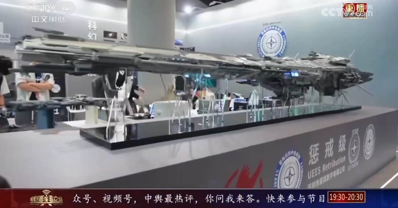 这模型在去年星际公民首次线下活动重庆站亮相以后,又经历了星际公民上海站活动。作为送给全世界星际公民玩家的礼物,这次中文社区把它带来展示给全世界科幻爱好者,这艘“惩戒”甚至登上了CCTV中文国际。