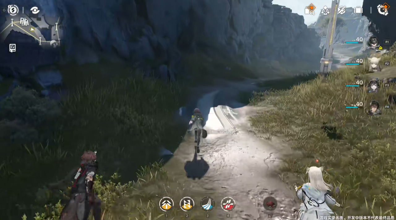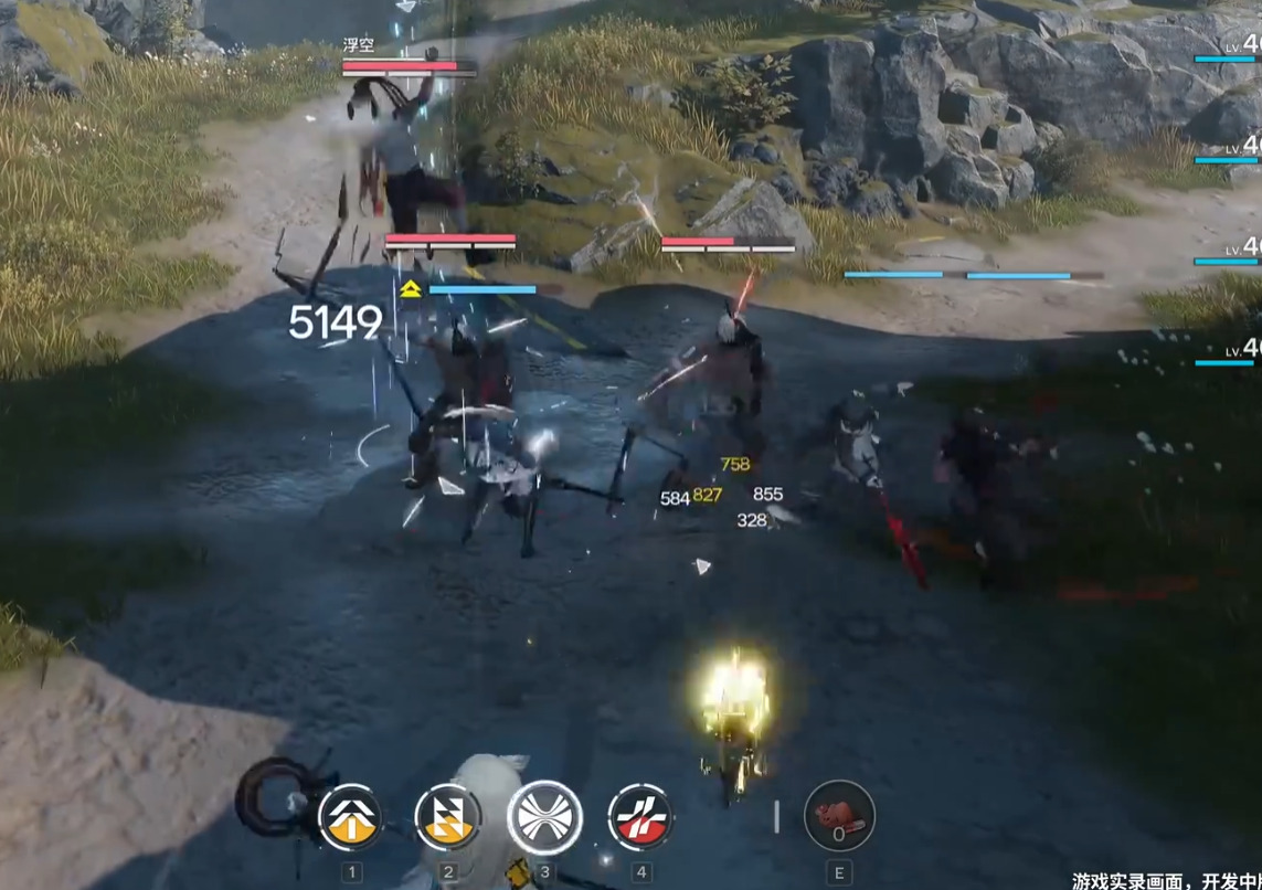 从怪物受击反应和1234的UI可以看出,终末地的战斗玩法是在MMO中很常见的那套自动平A+放技能的半即时制战斗。技能使用后需要等CD,而且似乎多名角色的技能CD是共用的,每个角色还有特写演出的“大招”。