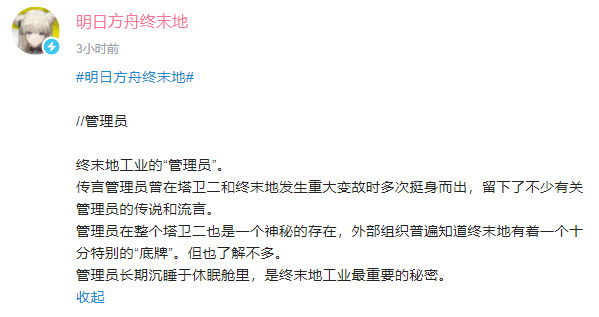 从这“干脆”的语气基本可以猜测,玩家扮演的这位“管理员”,其真是身份很可能还是“博士”。或者说,官方在有意识地引导玩家往“管理员=博士”的方向去联想。