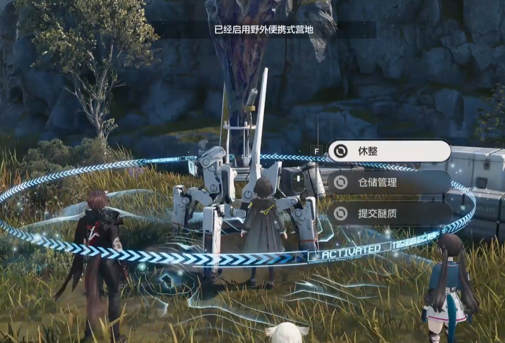 而野外似乎还散布着各种“便携营地”,应该是用作传送点。其中可以整理队伍,也能进行一个醚质的提交,可能是某种地图探索的奖励系统。