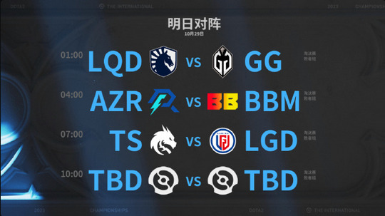 官方微博也分享了明日赛程,凌晨 1 点被雪碧击败落入败者组的液体将对阵 GG 战队,4 点 AR 将对阵 BB 战队,7 点重头戏雪碧对阵老干爹胜者组决赛。10 点则是败者组半决赛。