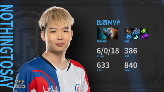 第一场让人难免不质问为什么“猛犸不上Ban”。莫言 NothingToSay 的马格纳斯/猛犸在比赛中的亮眼表现,6 杀 0 死 18 助攻节奏起飞,成功获得比赛 MvP。但同时 Niu 的暗夜魔王也单防后排,可以说是在 BP 阶段 LGD 有些失误,单先手发条控制不足导致中期未能依靠查理斯钢背兽打出优势。