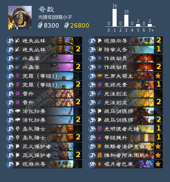 这里是臭小子,也可以叫我帅,借此机会分享我的两套上分套牌。(是的,我只用两套骑士……)话说骑士狂野胜率又登顶了,原因是不是玩的人太少了呢🤔