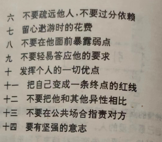 书还总结出了一些女性在恋爱中应当时刻注意的要点: