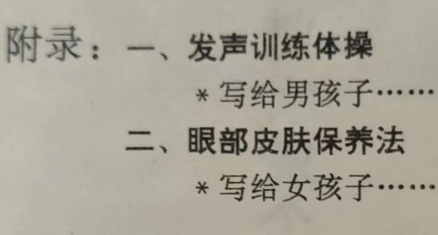 而更夸张的是,这书结尾还专门为男女读者提供了一套发声训练体操,甚至还有皮肤保养法,真可谓送佛送到西一般无微不至……