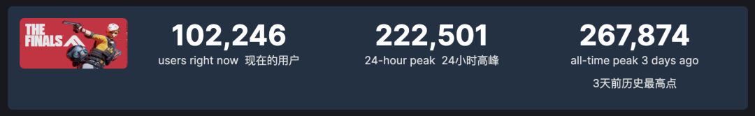 别的不说,游戏热度倒是挺高。根据 steamdb 数据显示, The Finals 最高同时在线人数超过了 26 万,在 steam 最热玩游戏榜上排第 6 ,仅次于 CS 2 、 dota2 那几个万年高人气怪物。