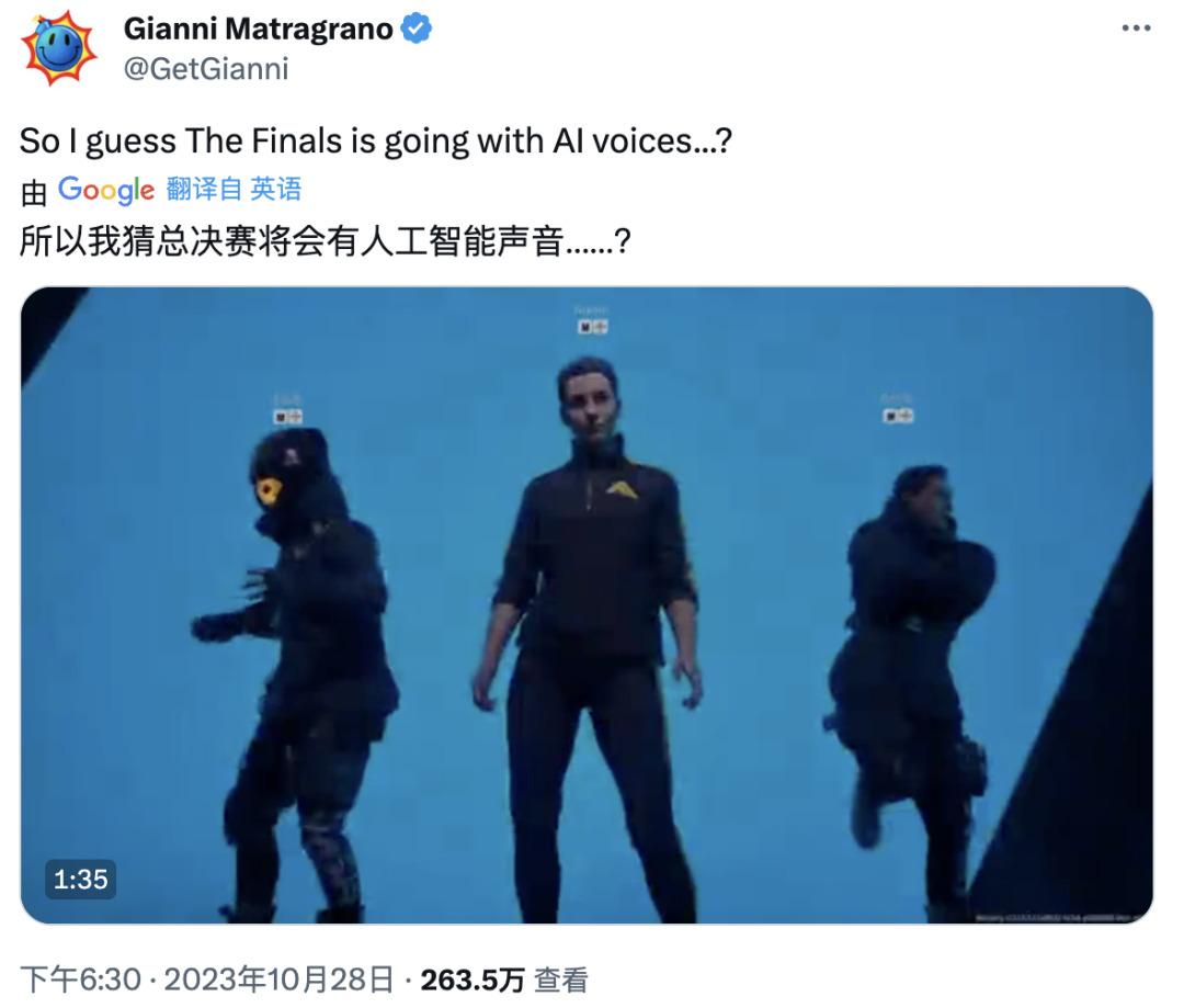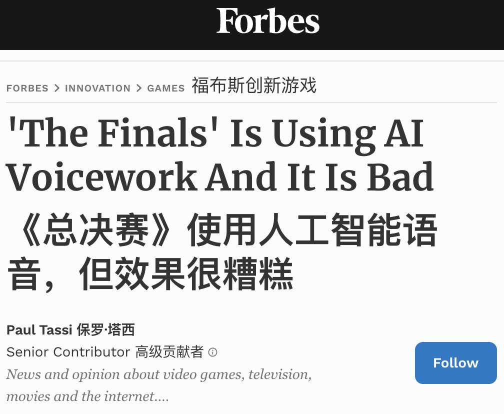 《 The Finals 》属实是倒大霉,它压根就不是第一个搞 AI 配音的,但它一定是搞 AI 配音的游戏里最惨的。