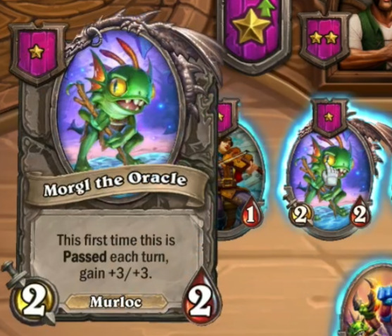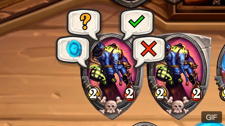 当酒馆中出现能让队友(通过传递)凑成对子或三连的随从时,这些随从会有全新的提示特效。