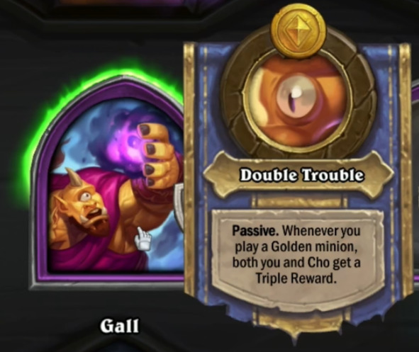 古加尔,每当你使用一张金色随从牌,你和队友都获取一个三连奖励。