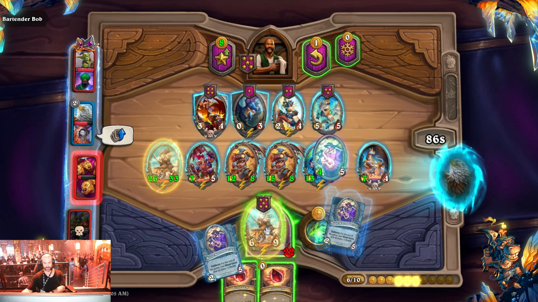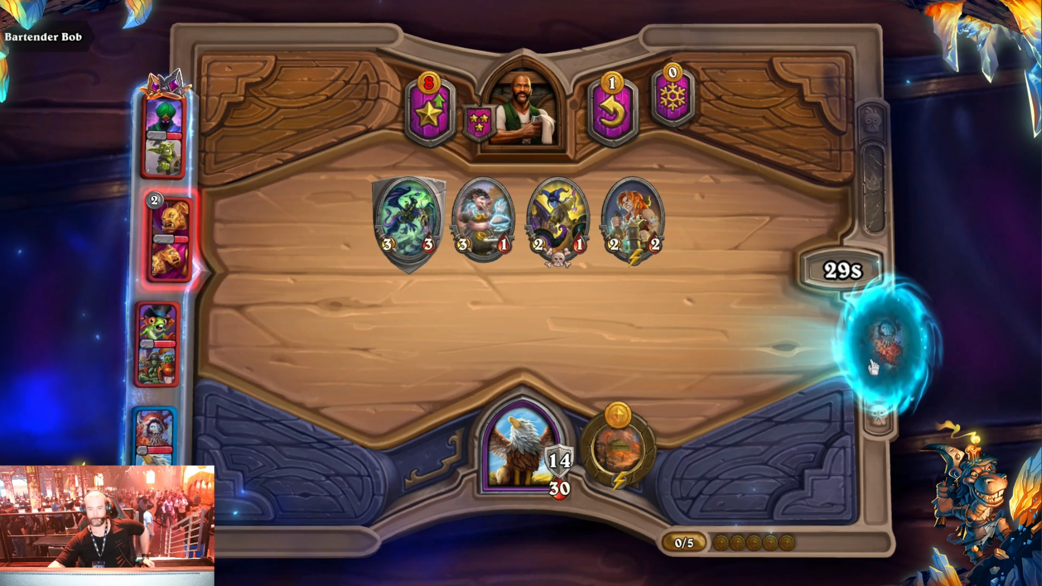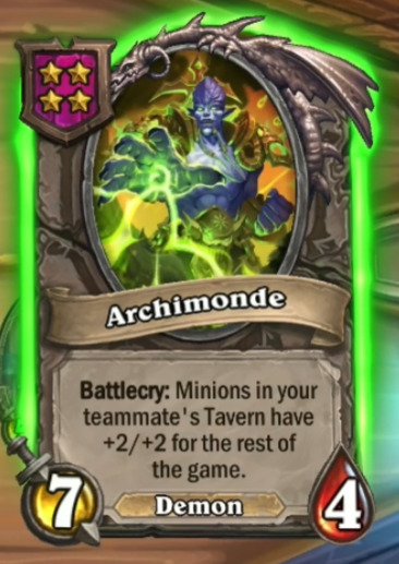 恶魔,战吼:在本局对战的剩余时间内,你队友酒馆中的随从获得+2/+2。