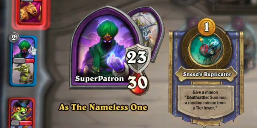 战斗开始时:变形成为你队友的生命值最高的随从的复制。